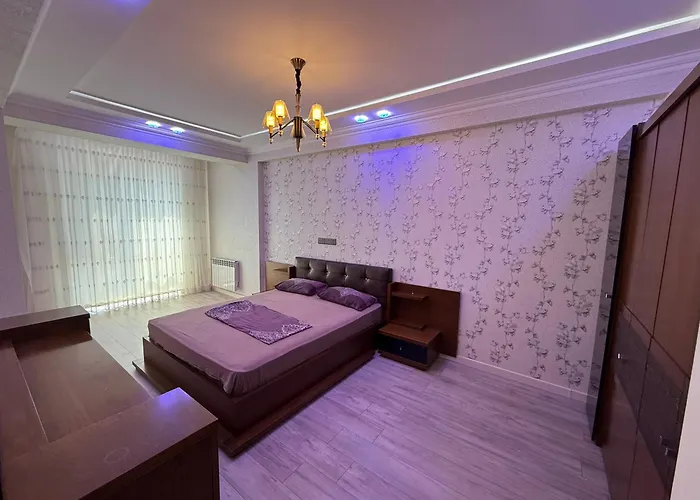 На оборудованной кухне доступен холодильник и кухонная утварь. Гости могут добраться до аэропорта Гейдара Алиева за 21 минут на авто.